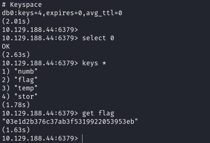 Redis 的 数据库 0(db0) 中有 4 个键(keys)